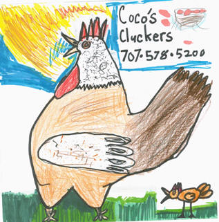 Welcome to COCO'S CLUCKERS. Please come into my coop! I sell my chicken's eggs, which are always fresh, organic and high in omegas. I sell my eggs so I can save my money to buy a horse. I have many chickens and chicks. I have Americaunas, a Black Cochin bantam, Dominique's, Egyptian Fayoumis, Golden Laced Polish and mystery breeds. My girls are happy, civilized, free ranging chickens. My eggs sell for $4.00 a dozen. They are irresistible.